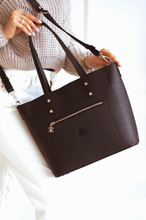 İmpolo Linda Üçgözlü Siyah Kum Kadın Omuz Çanta