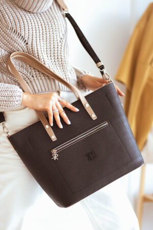 İmpolo Linda Üçgözlü Siyah Taba Kadın Omuz Çanta