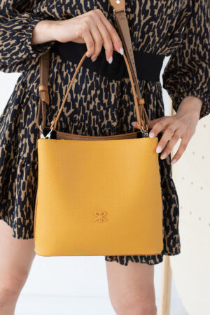 İmpolo Keti Üçgözlü Açık Hardal Taba Kadın Çanta