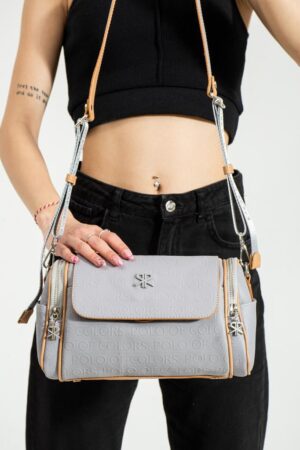 ImPolo Meri Gri Taba Gofraj Baskı Silindir Tarzı Kadın Omuz Çapraz Çantası 22×28 Ebatında