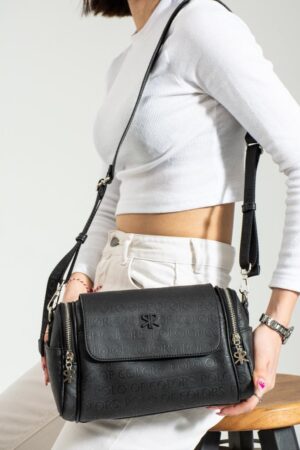ImPolo Meri SiyahGofraj Baskı Silindir Tarzı Kadın Omuz Çapraz Çantası 22×28 Ebatında