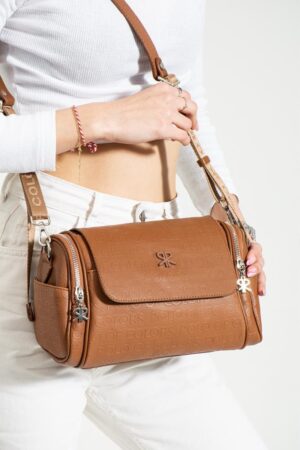 ImPolo Meri Taba Gofraj Baskı Silindir Tarzı Kadın Omuz Çapraz Çantası 22×28 Ebatında