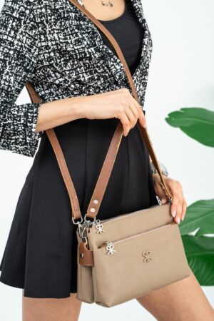 ImPolo sera Gri Taba Kadın Cüzdan Ve Omuz Çantası 14×23 Ebatında