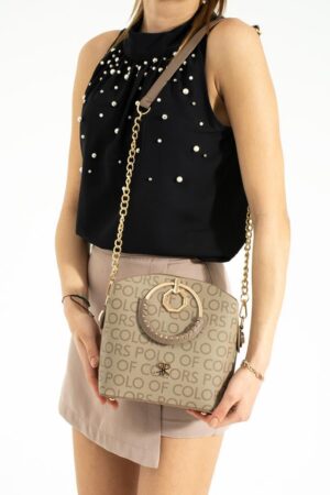 Impolo Sophia Çember Saplı Empirme Baskı Üç Gözlü Vizon Omuz Ve El Çantası 22×25 Ebat