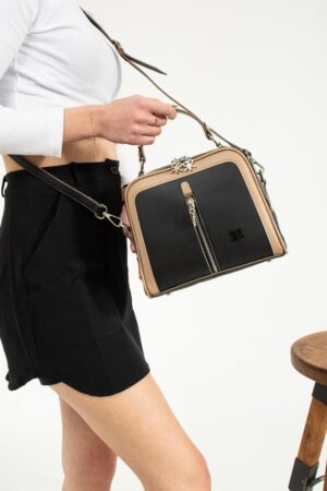 Impolo Sophia Çember Saplı Empirme Baskı Üç Gözlü Siyah Kamel Omuz Ve El Çantası 22×25 Ebat