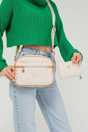 ImPolo Esta Nora Krem Kamel Kadın Kombin Çanta Ve Cüzdan Çanta 21×27 Cüzdan 10X13 Ebatlarında