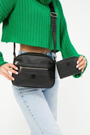 ImPolo Esta Nora Siyah Kadın Kombin Çanta Ve Cüzdan Çanta 21×27 Cüzdan 10X13 Ebatlarında