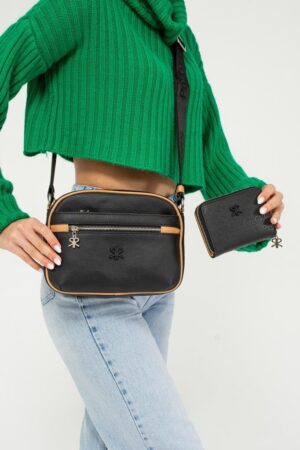 ImPolo Esta Nora Siyah Kamel Kadın Kombin Çanta Ve Cüzdan Çanta 21×27 Cüzdan 10X13 Ebatlarında