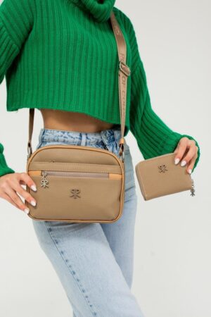 ImPolo Esta Nora Vizon Kamel Kadın Kombin Çanta Ve Cüzdan Çanta 21×27 Cüzdan 10X13 Ebatlarında