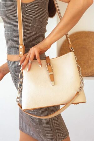 İmpolo Keti Üçgözlü Krem Taba Kadın Çanta