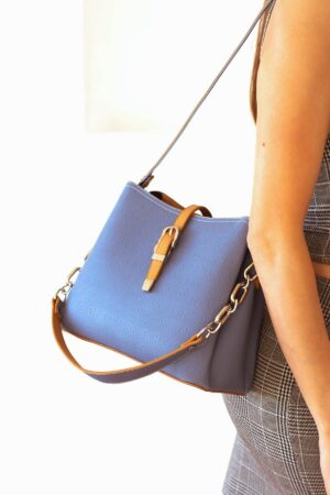 İmpolo Keti Üçgözlü Mavi Taba Kadın Çanta
