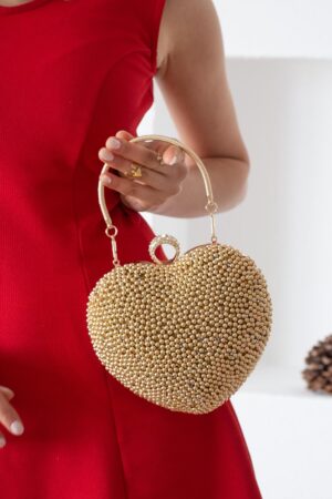 İmpolo Ella Kalp İnci Altın Kadın Abiye El Çanta 19×20 Ebat