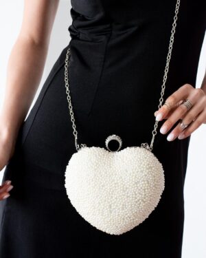 İmpolo Ella Kalp İnci Beyaz Kadın Abiye El Çanta 19×20 Ebat
