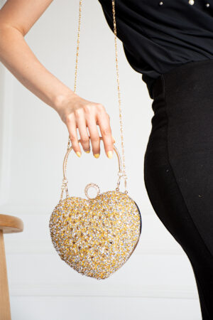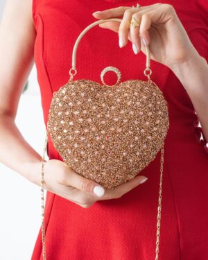 İmpolo Ella Kalp Taşlı Altın Kadın Abiye El Çanta 19×20 Ebat