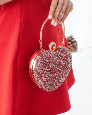 İmpolo Ella Kalp Taşlı Kırmızı Kadın Abiye El Çanta 19×20 Ebat