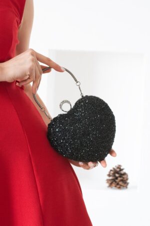 İmpolo Ella Kalp Taşlı Siyah Kadın Abiye El Çanta 19×20 Ebat