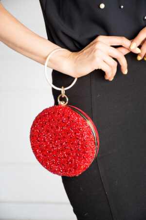 İmpolo Jesi Kırmızı Taşlı Bilezik Abiye Omuz Ve Kol Çanta 16×16 Ebat