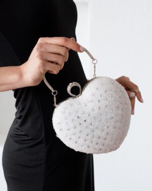 İmpolo Ella Kalp Taşlı Beyaz Kadın Abiye El Çanta 19×20 Ebat