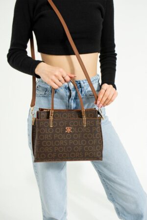 ImPolo Shakira Kahve Kamel Empirme Baskı Kadın Kol Ve El Çantası 21X27 Ebatında