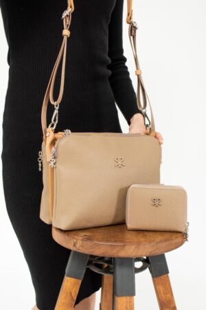 ImPolo Darin Pudra Taba Kadın Kombin Çanta 25×30 Cüzdan 10×13 Ebat