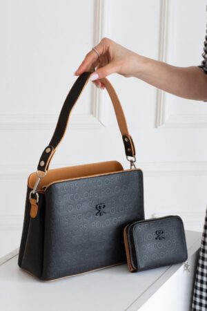 ImPolo Darin Siyah Taba Kadın Kombin Çanta 25×30 Cüzdan 10×13 Ebat