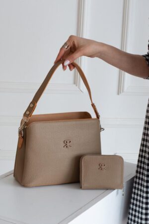 ImPolo Esta Nora Krem Kamel Kadın Kombin Çanta Ve Cüzdan Çanta 21×27 Cüzdan 10X13 Ebatlarında