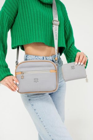 ImPolo Esta Nora Gri Kamel Kadın Kombin Çanta Ve Cüzdan Çanta 21×27 Cüzdan 10X13 Ebatlarında