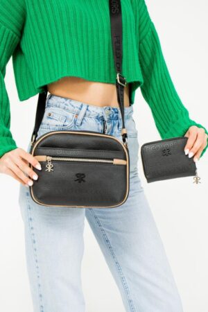 ImPolo Esta Nora Siyah Kamel Kadın Kombin Çanta Ve Cüzdan Çanta 21×27 Cüzdan 10X13 Ebatlarında