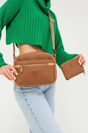 ImPolo Esta Nora Vizon Kamel Kadın Kombin Çanta Ve Cüzdan Çanta 21×27 Cüzdan 10X13 Ebatlarında