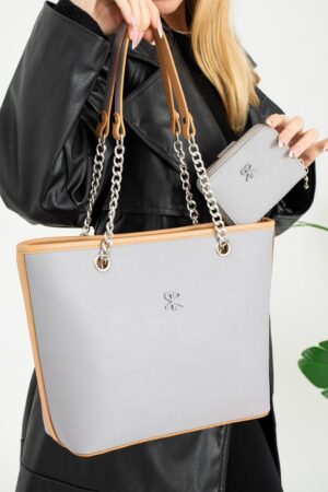 ImPolo Ida Nora Gri Kamel Kadın Omuz Çantası Kombin Çanta26X38 Cüzdan10x14