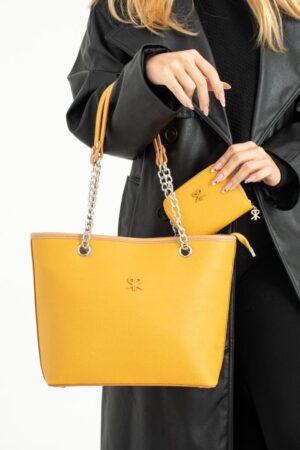 ImPolo Ida Nora Hardal Sarısı Kamel Kadın Omuz Çantası Kombin Çanta26X38 Cüzdan10x15
