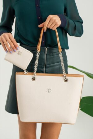 ImPolo Ida Nora Beyaz Kamel Kadın Omuz Çantası Kombin Çanta26X38 Cüzdan10x13