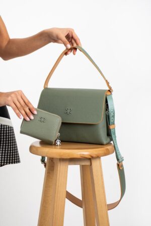 Impolo Neomi Yeşil Kadın Kombin Çanta 22×26 Cüzdan 12X10 Ebat