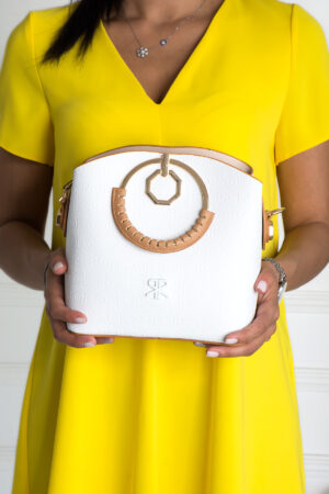 İmpolo Sophia Çember Saplı Üç Gözlü P.Beyaz Omuz El Çanta 22×25 Ebat