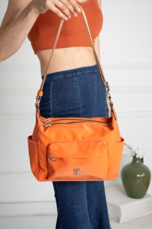 İmpolo buzi Saten Oranj Kadın Omuz Ve Çapraz Çanta 23×27 ebatında