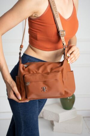 İmpolo buzi Saten Taba Kadın Omuz Ve Çapraz Çanta 23×27 ebatında