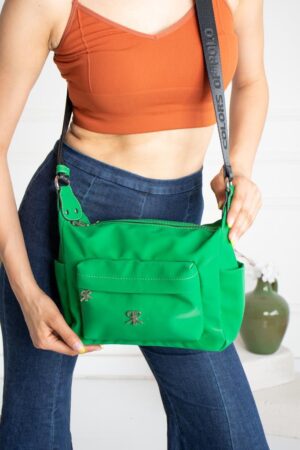 İmpolo buzi Saten Yeşil Kadın Omuz Ve Çapraz Çanta 23×27 ebatında