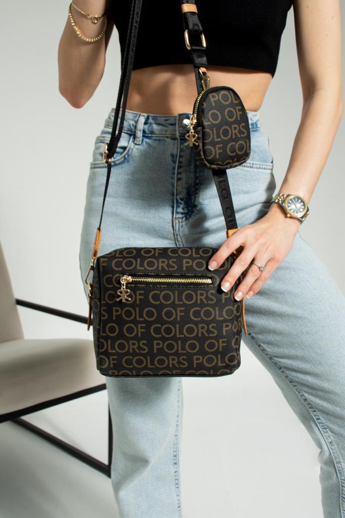 ImPolo Adelina SiyahKamel Empirme Baskı Kadın Spor Omuz Ve Çapraz Çantası 19×21 Ebatında