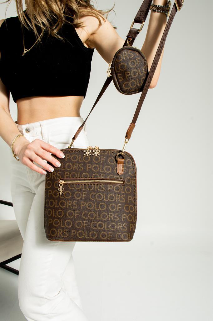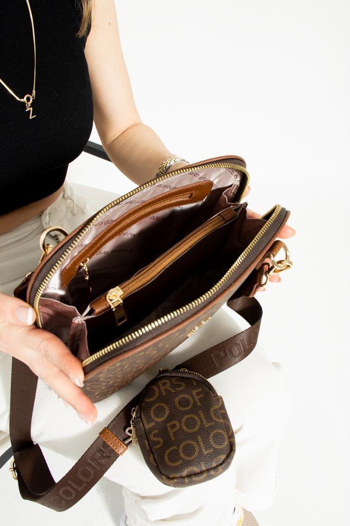 / İmpolo Aisha Kahve Kamel Empirme Baskı Kadın Spor Omuz Çapraz Çantası 24X26 Ebatında