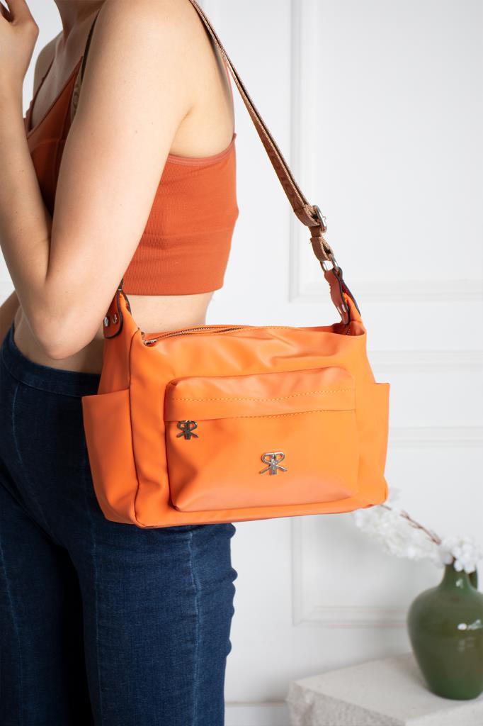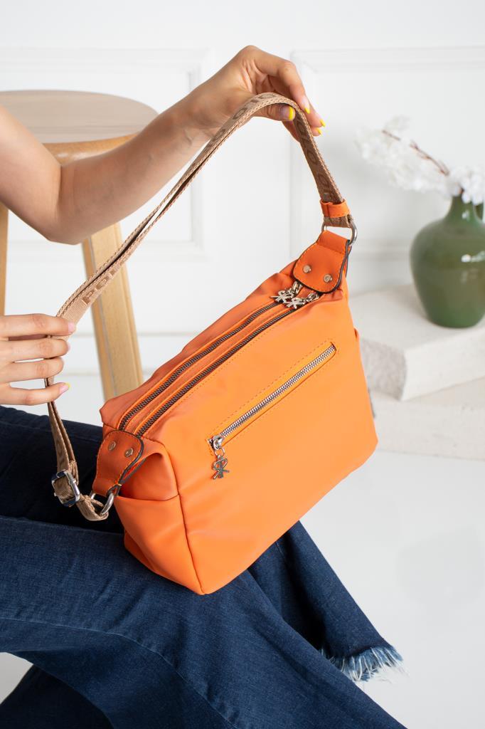 İmpolo buzi Saten Oranj Kadın Omuz Ve Çapraz Çanta 23×27 ebatında