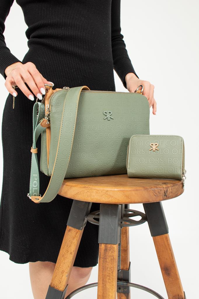 ImPolo Cemre Nora Haki Yeşil Kamel Kadın Omuz Çantası Ve Cüzdan 22×29 Cüzdan 10×12 Ebatınad