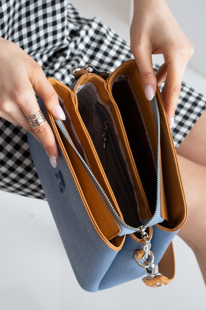 ImPolo Darin Mavi Taba Kadın Kombin Çanta 25×30 Cüzdan 10×13 Ebat