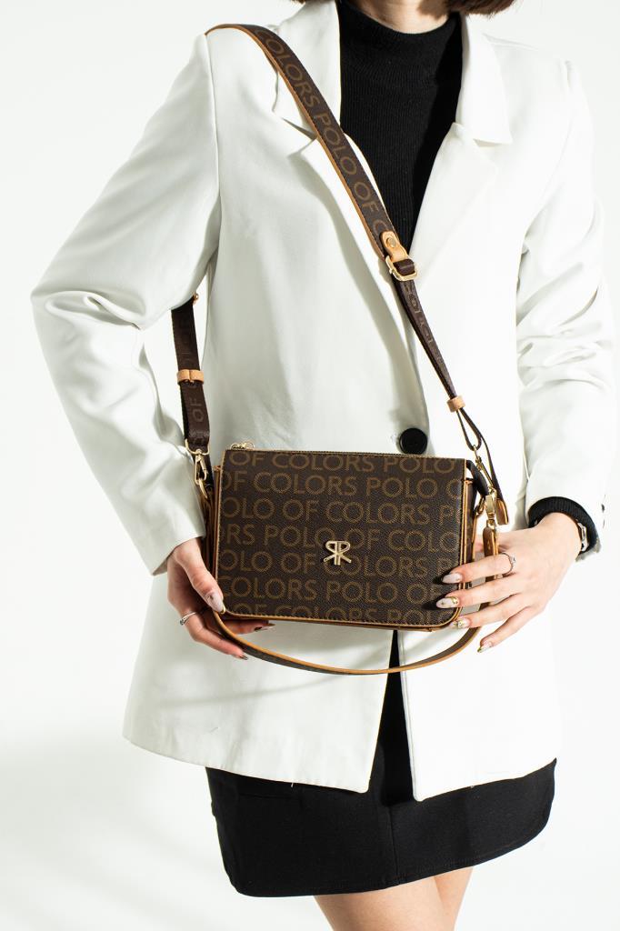 / ImPolo Dayanna Empirme Baskı Kahve Kamel Kadın Omuz Ve Çapraz Çanta 16×22 ebat