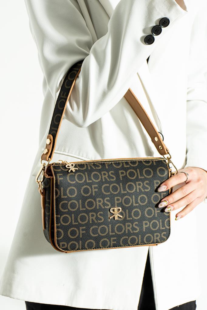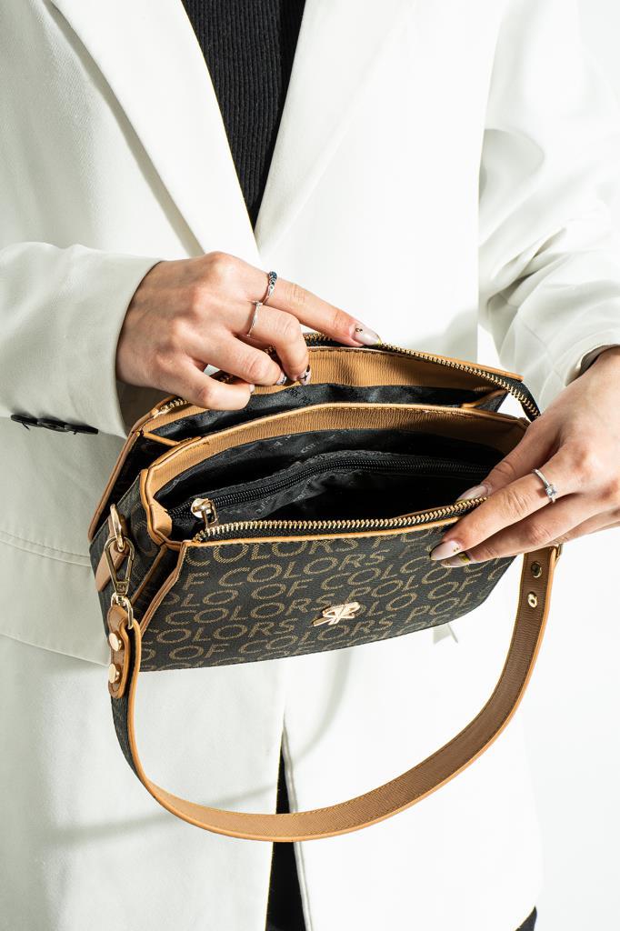 / ImPolo Dayanna Empirme Baskı Siyah Kamel Kadın Omuz Ve Çapraz Çanta 16×22 ebat