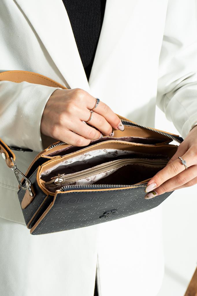 ImPolo Dayanna Empirme Baskı Siyah Kamel Kadın Omuz Ve Çapraz Çanta 16×22 ebat