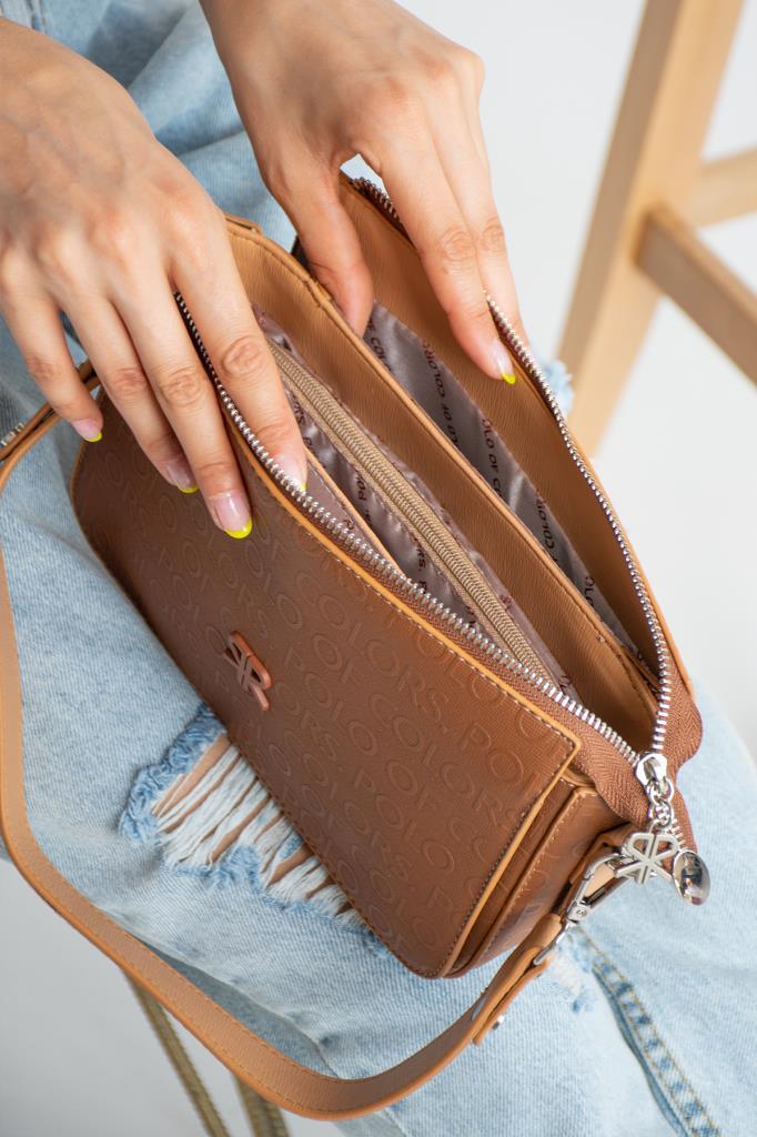 ImPolo Dayanna Empirme Baskı Kahve Kamel Kadın Omuz Ve Çapraz Çanta 16×22 ebat
