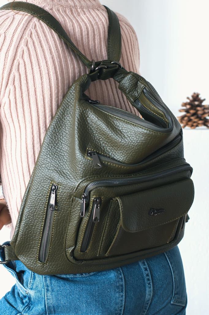 / ImPolo Delilah Çok Amaçlı Haki Yeşil Kadın Sırt Ve Omuz Çanta 36×43 Ebat