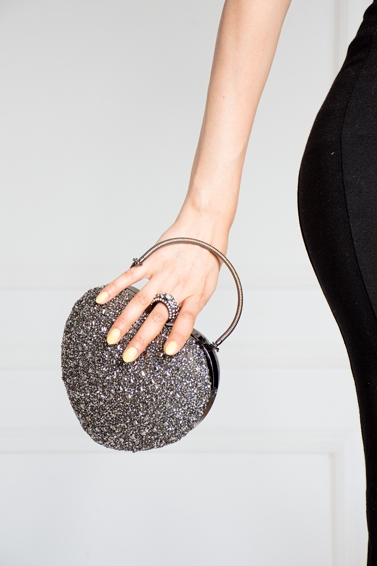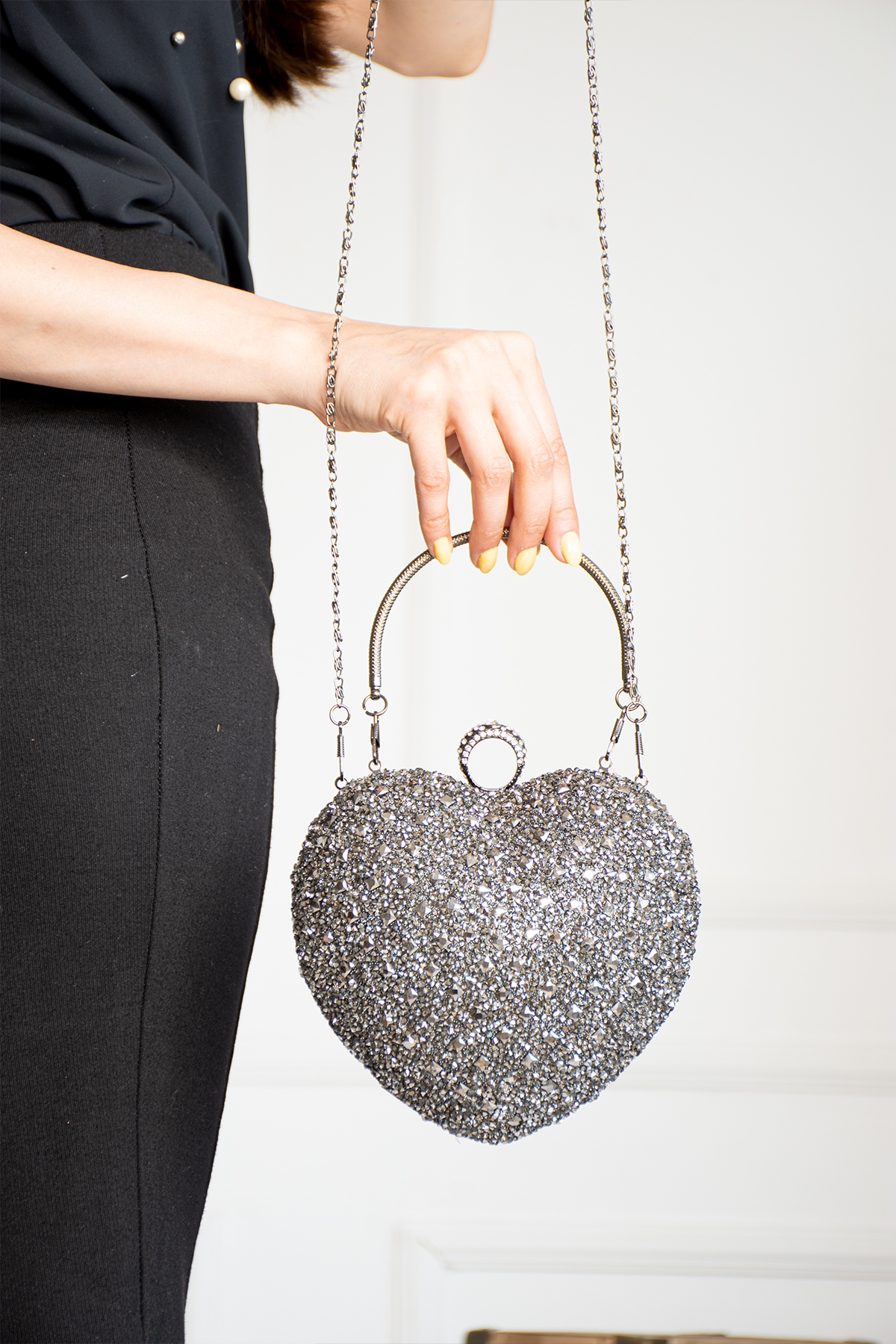 İmpolo Ella Kalp Taşlı Füme Kadın Abiye El Çanta 19×20 Ebat