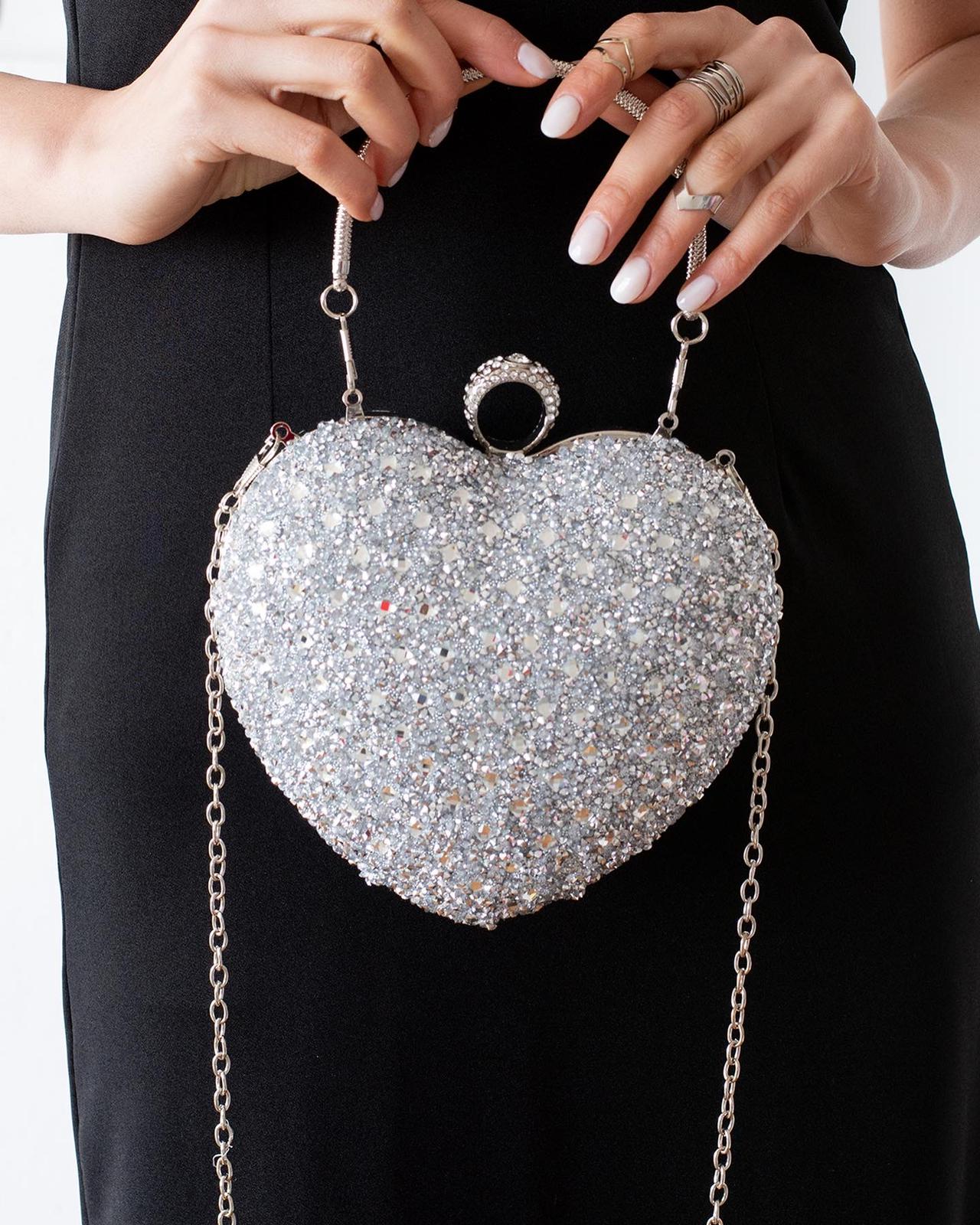 İmpolo Ella Kalp Taşlı Gümüş Kadın Abiye El Çanta 19x20 Ebat quantity