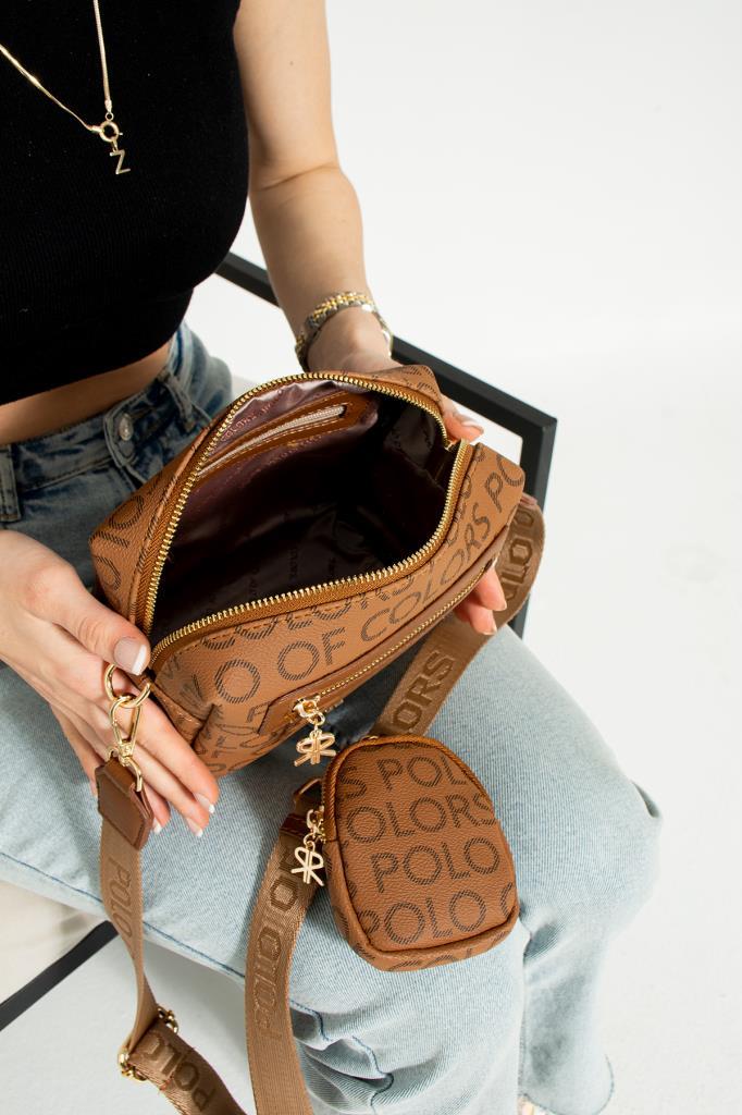 ImPolo Adelina Kahve Kamel Empirme Baskı Kadın Spor Omuz Ve Çapraz Çantası 19×21 Ebatında